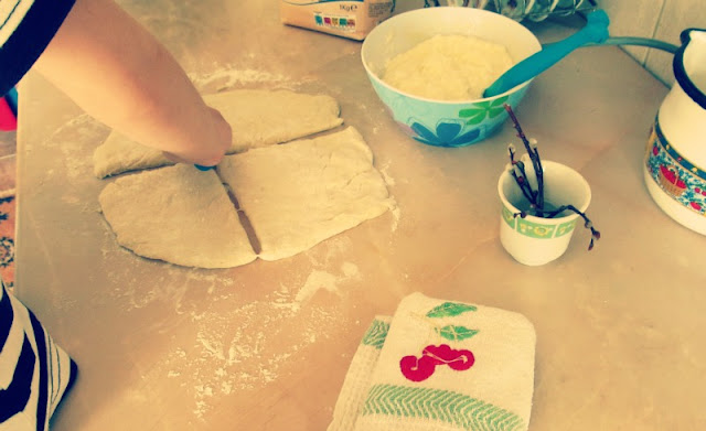 Am vrut să încercăm rețeta lui Radu Anton Roman de brânzoaice, să vedem dacă cele muntenești le bat pe cele moldovenești...Eliza le-a făcut, că tot n-a mers azi la grădiniță, a picurat, stropit laptele, a învârtit maiaua de-a zăpăcit-o, a ras portocale, a bătut ouă, a frământat, a tăiat aluatul pătrate, le-a superumplut cu brânză, a făcut plicuri pictate cu ou, le-a pudrat cu zahăr și le-a pus în cuptor!
